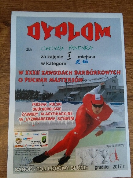 To nie koniec sukcesów. Opiekun reprezentacji – pani Cecylia Pandyra – bez wątpienia dotrzymuje kroku swoim podopiecznym. W daniach 2- 3 grudnia pani profesor startowała w Zawodach Barbórkowych w Sanoku o Puchar Mastersów w łyżwiarstwie szybkim, gdzie zajęła I miejsce.