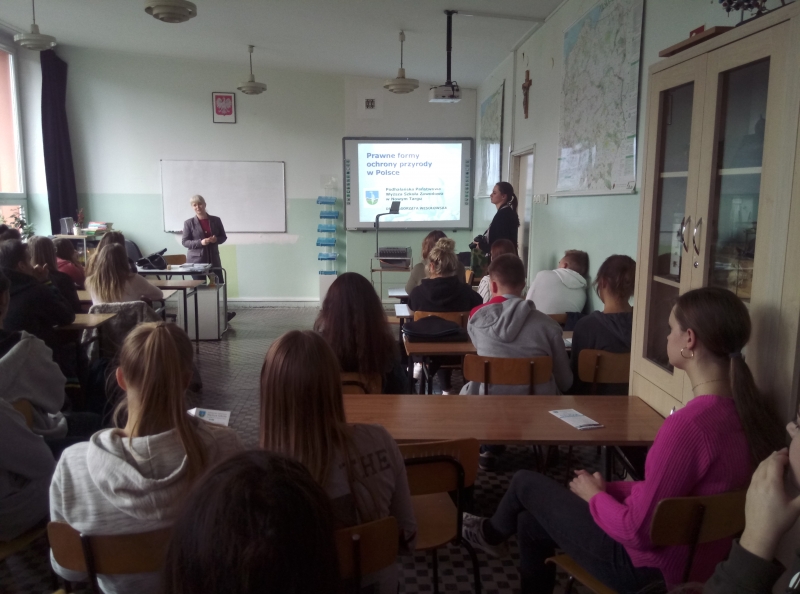 W piątek 16.11., na zaproszenie Pani Krystyny Kubik-Karp, odbył się w naszej szkole ważny i ciekawy wykład z prawnych form ochrony przyrody w Polsce. Prelekcję wygłosiła Pani dr Małgorzata Wesołowska z Podhalańskiej Państwowej Wyższej Szkoły Zawodowej w Nowym Targu. W spotkaniu wzięli udział uczniowie klas 2LO i 3LO o profilu biologiczno-chemicznym, jak również nauczyciele.