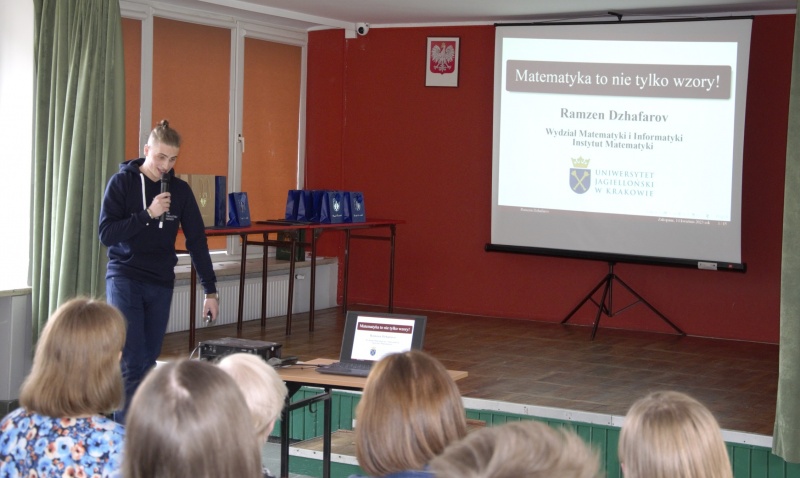 Referat „Matematyka to nie tylko wzory” wygłosił absolwent naszej szkoły, student piątego roku matematyki Uniwersytetu Jagiellońskiego, Ramzen Dzhafarov.